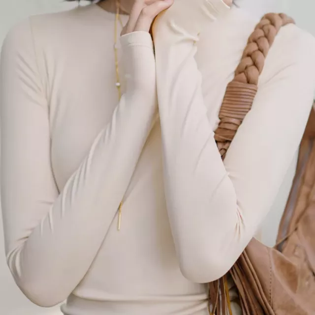 This top is designed for autumn and winter wear, making it an excellent base layer to keep you warm. The medium-weight knit fabric adds just the right amount of insulation without feeling too heavy. Whether paired with jeans, skirts, or layered under blazers and coats, this top fits seamlessly into any outfit.
