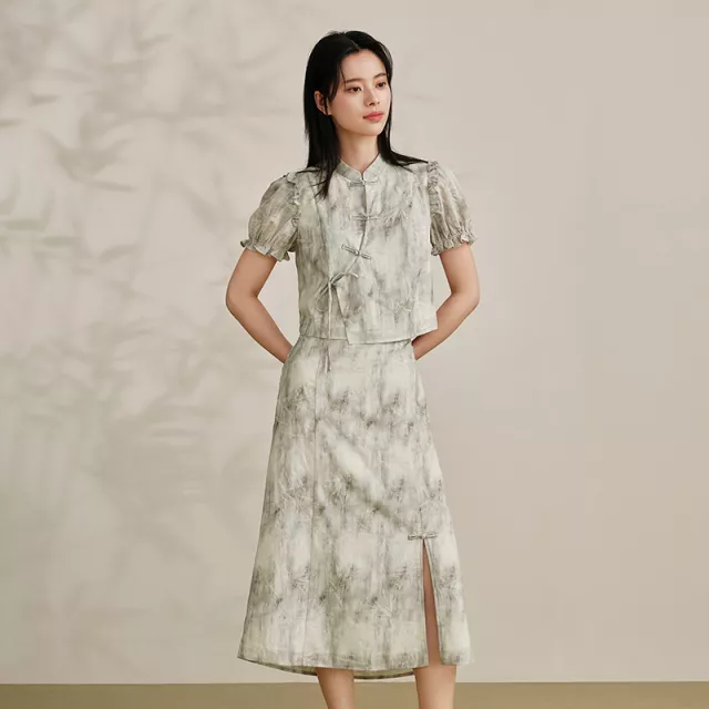 Designed for the season, this outfit is perfect for everything from a casual brunch to a beachside stroll. The two-piece design allows for a customizable fit, making it versatile enough to mix and match with your existing wardrobe. The stand collar and puff sleeve details elevate the overall aesthetic, giving you a fashionable, put-together look without any effort.