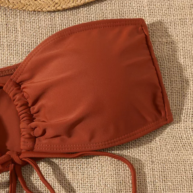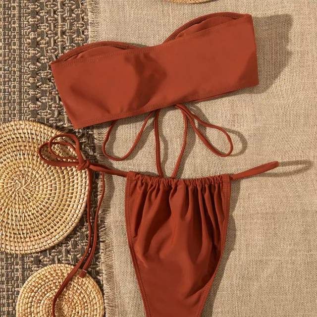 Crafted from a high-quality blend of polyester and spandex, the fabric is soft, stretchy, and quick-drying, offering a snug yet flexible fit that moves with you. The solid color design gives it a sleek, minimalist edge while the strapless cut and halter neck tie add that flirty, feminine vibe. Built-in pads provide support without wires, so you stay comfortable without compromising on style.