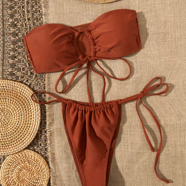 Make a splash this season with the ultimate beach-ready look. Our Women’s Strapless O-Ring Bikini Set is designed for confident, carefree summer days. With a sultry bandeau top featuring an eye-catching O-ring detail and adjustable tie-side bottoms, this two-piece swimsuit brings together comfort, fit, and fashion. Whether you’re lounging by the pool, heading to a beach party, or catching waves, this bikini is your go-to for all warm-weather adventures.