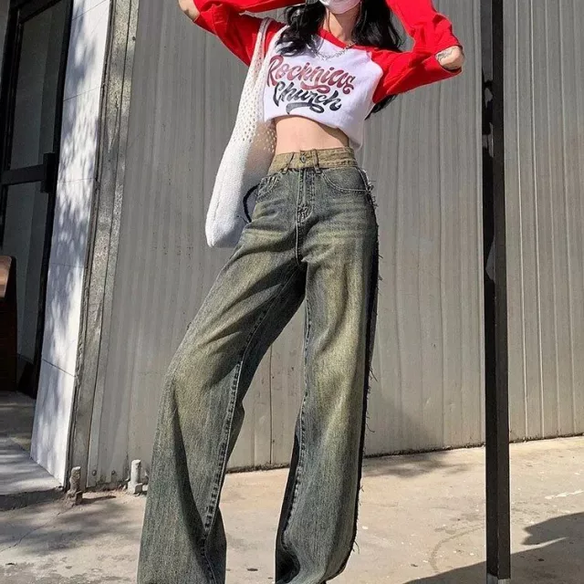 Every aspect of these jeans is designed with your lifestyle in mind. The high waist offers a flattering fit while the straight, loose cut ensures day-long comfort. Made from a blend of soft cotton and polyester, they promise durability and a gentle touch against your skin. The button fly closure adds a classic touch, and the medium wash with bleached, washed, and patchwork details provide a vintage look that never goes out of style. With sizes ranging from S to 4XL, find the perfect fit for any body type and embrace the blend of Korean fashion with high-street trends.