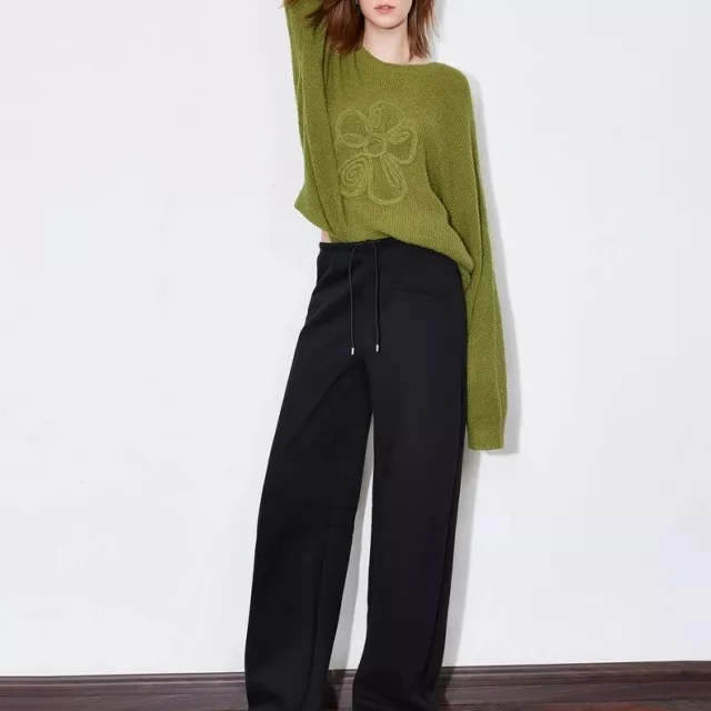 Crafted from a premium polyester blend, these pants provide a lightweight yet cozy feel, making them ideal for autumn and winter wear. The slightly stretchy knit fabric ensures ease of movement, while the full-length wide-leg silhouette offers a relaxed and flattering fit for all body types.