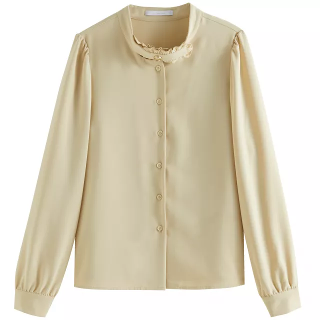 • Design: Features a chic ruffled neckline and puffed long sleeves for a feminine, elegant style.